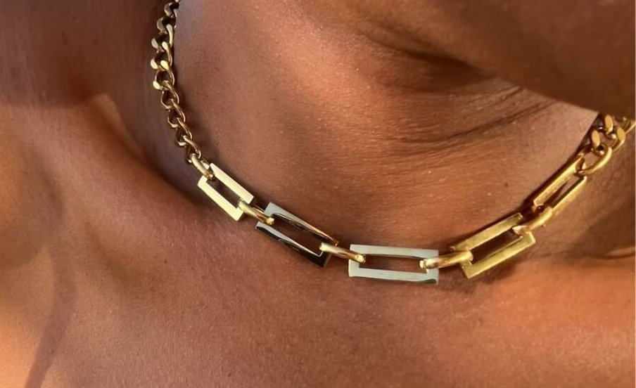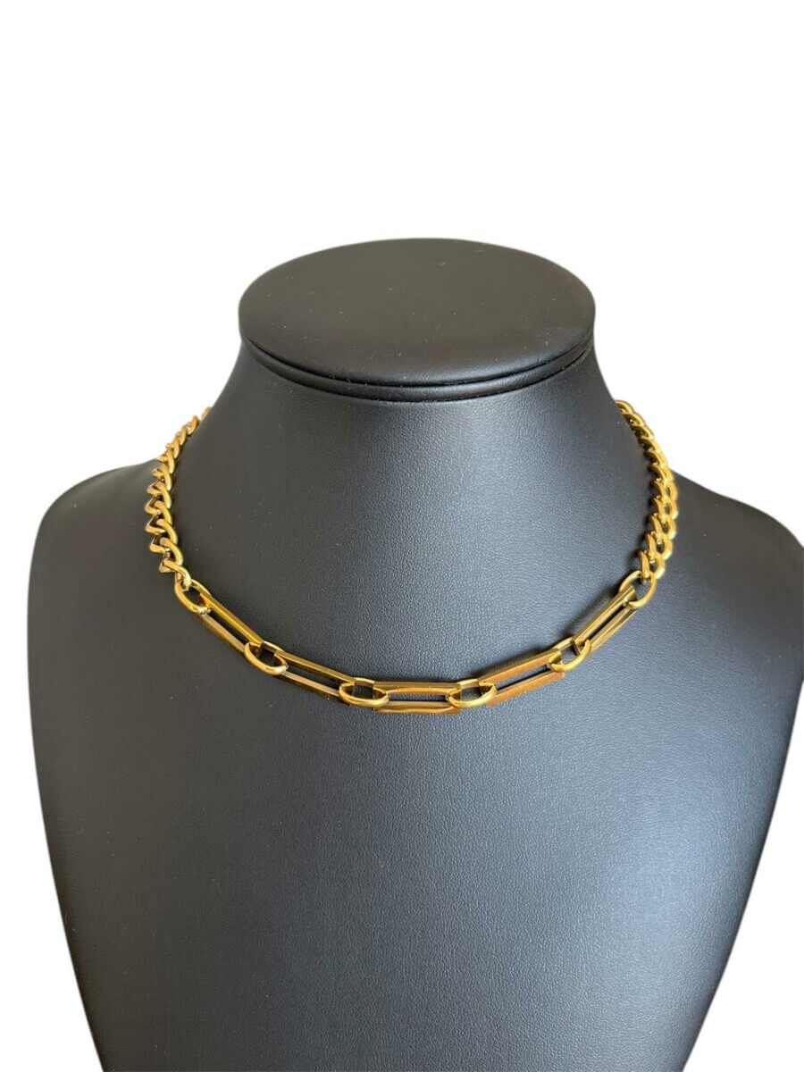 Collier en acier inoxydable doré (plaqué or) . Excellente qualité. Vendu à l’unité