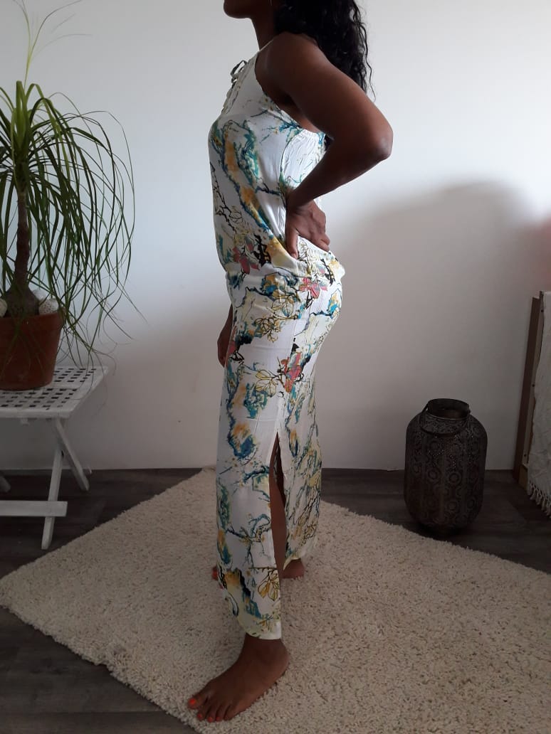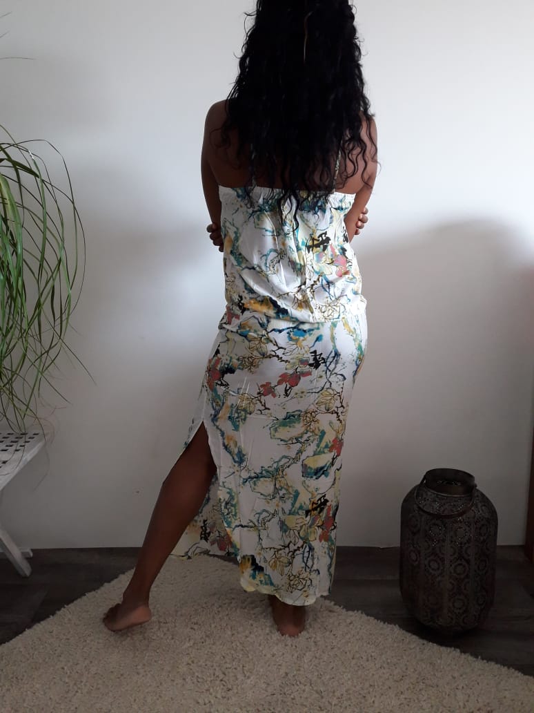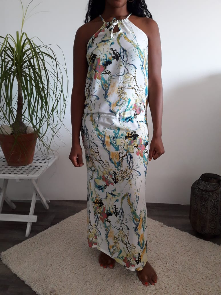 Robe Noémie longue ajustable par la taille, Haute qualité rayon/ viscose.